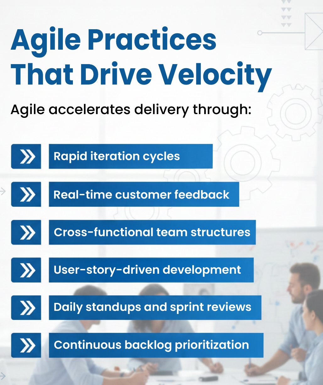 - Culture Development: Reinforce a culture of collaboration, continuous feedback, lean delivery, and strong business-IT alignment.