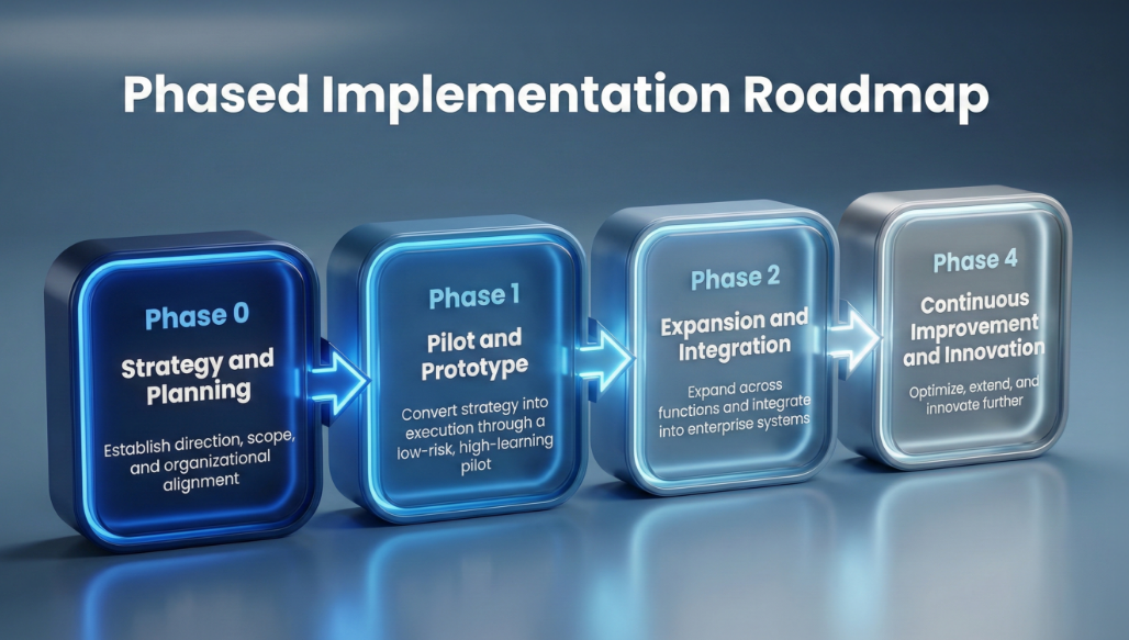 This phase converts strategy into execution through a low-risk, high-learning pilot initiative.